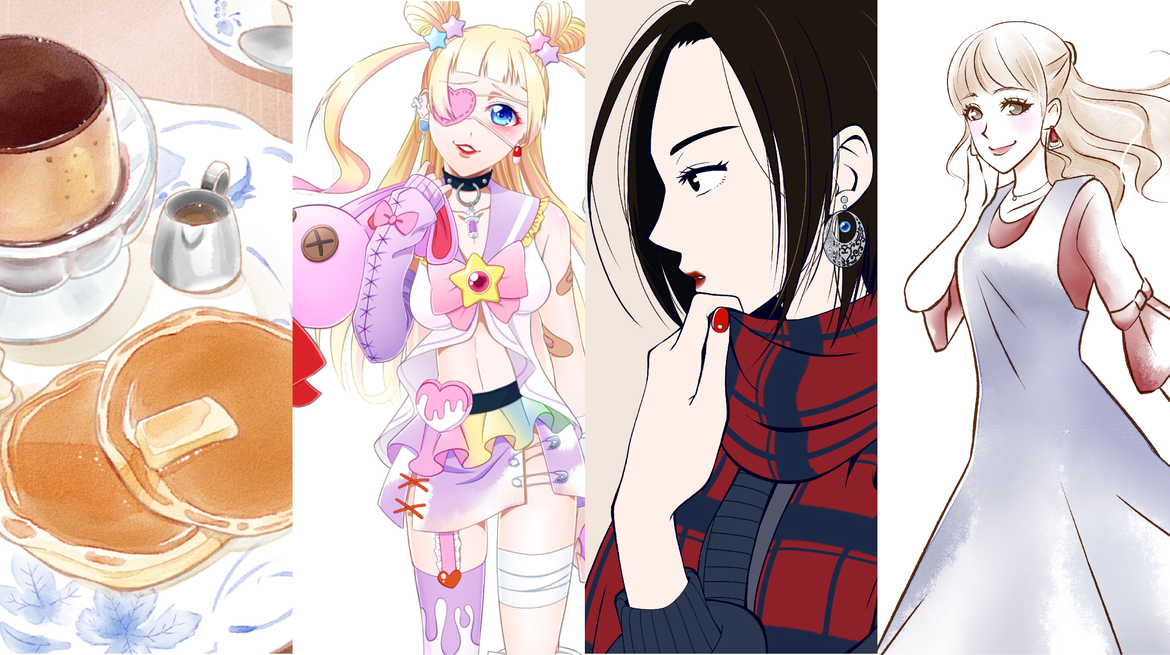 おしゃれなファッションイラストから、親しみやすい似顔絵、華やかなマンガ調イラストまで、幅広いイラストの制作が可能です。